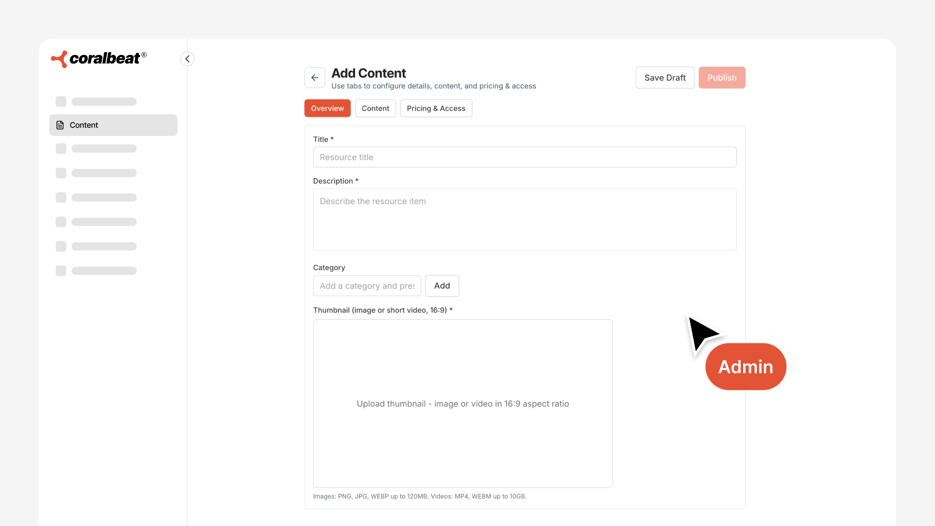 Custom thumbnail makes your library look professional. Upload an image that represents the content. Your brand colors, clean typography, or content screenshots all work.