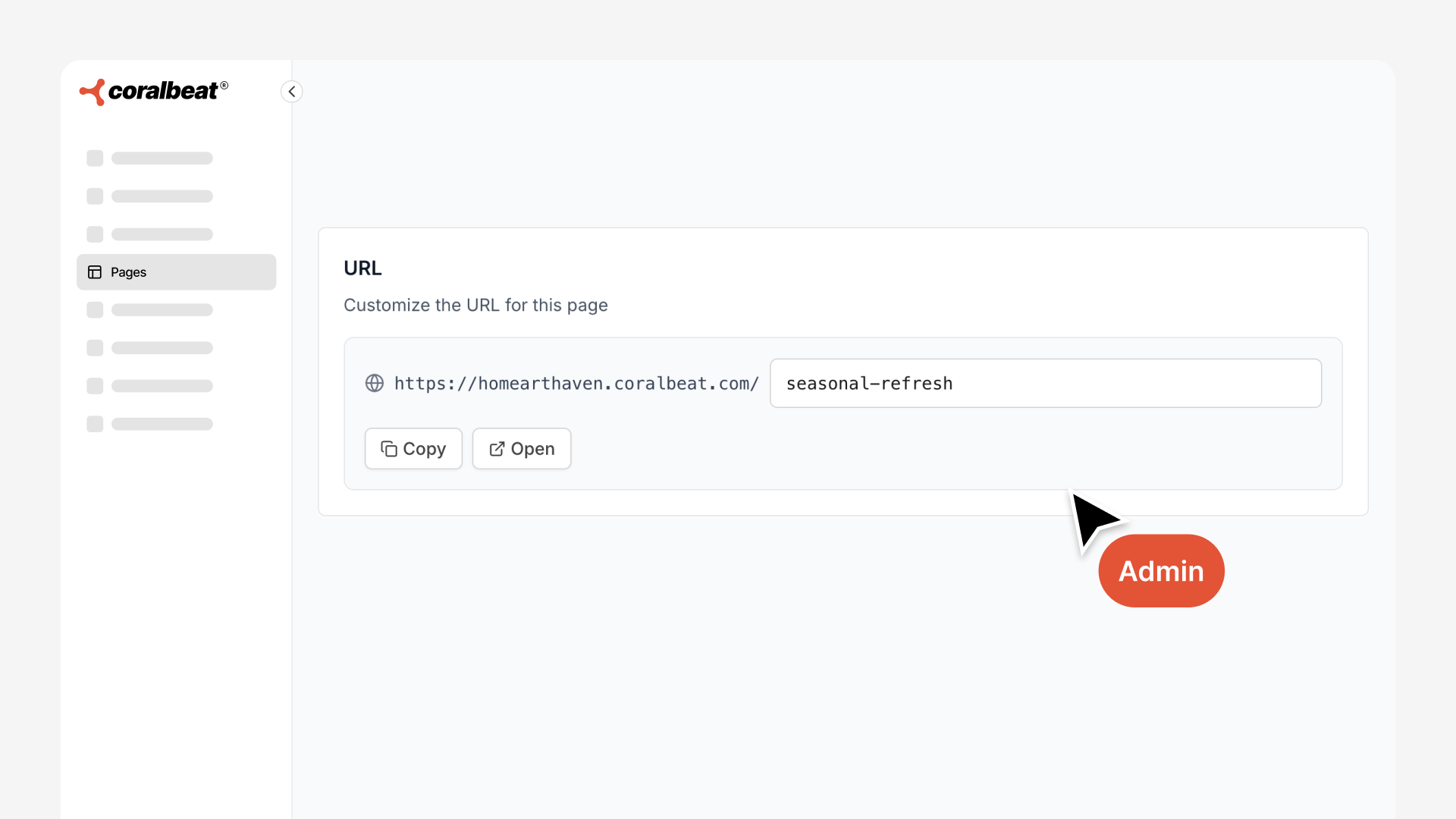 Add more pages as you expand to new audiences or launch new offerings. Navigate to Pages in your Admin Dashboard to create your first page.