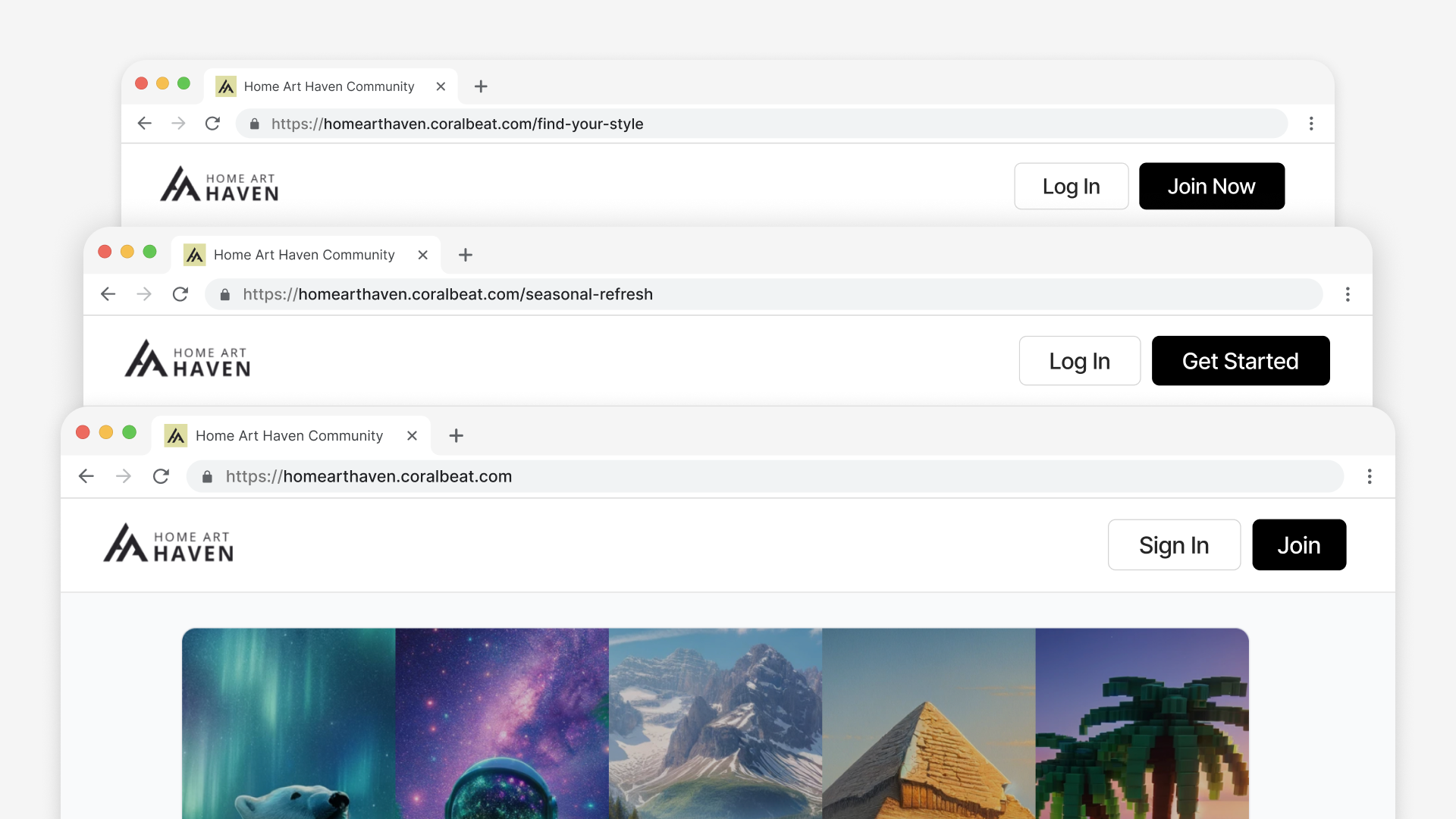 Custom Pages solve this. Create as many landing pages as you need - each with messaging tailored to a specific audience, each routing new members to the right Space in your community from day one.